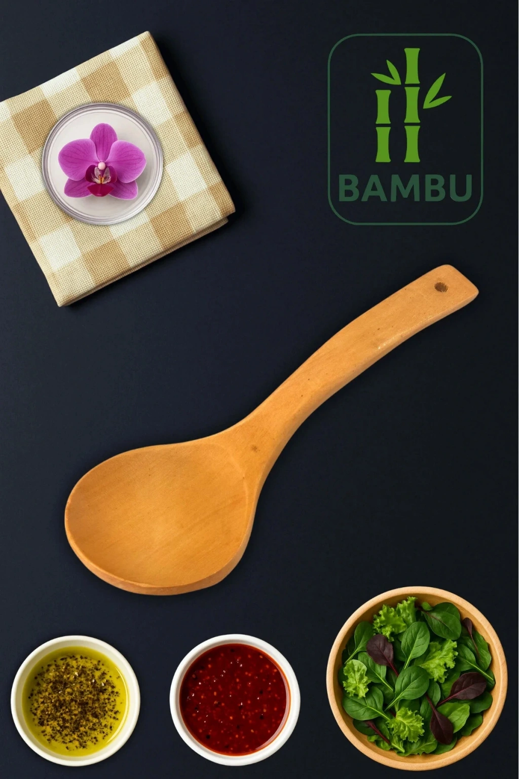 26 cm uzunluğunda, 8 cm geniş ağızlı eğri bambu büyük kaşık, hem günlük yemek hazırlıklarınızda hem de servis sunumlarında maksimum işlevsellik sağlar. Doğal yapısı, ergonomik tasarımı ve geniş hacimli formu sayesinde konforlu ve güvenli bir kullanım sunar.