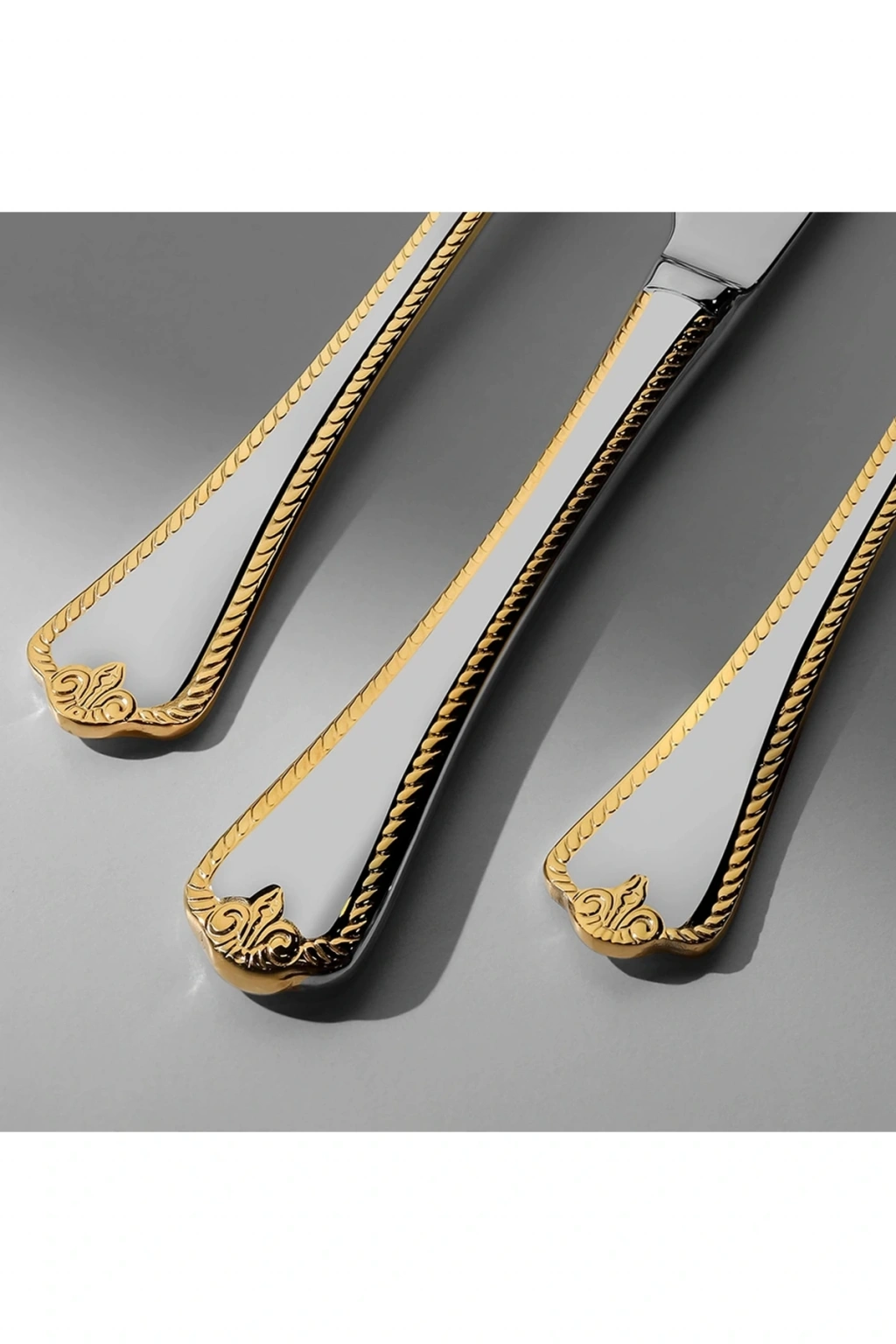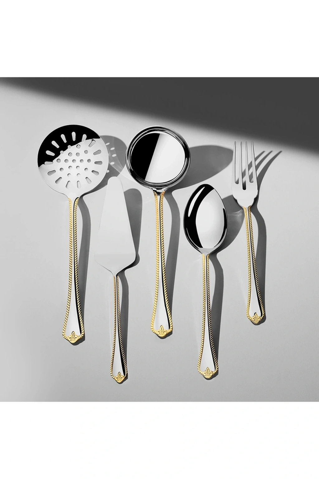 Nehir Fulya Altın Sade 5 Parça Paslanmaz Çelik Servis Takımı