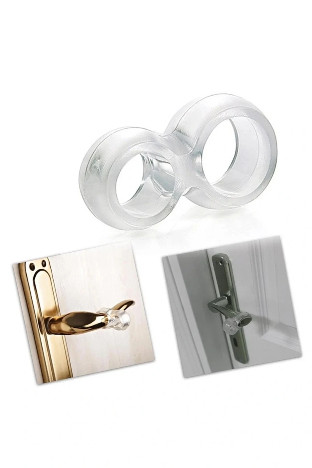 Şeffaf kapı stoperini sıcak suda 5 dakika beklettikten sonra esneterek kapı koluna takabilirsiniz.