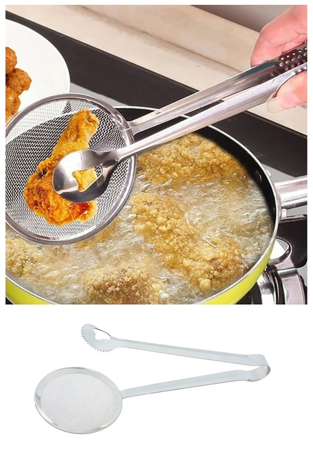 Kızartma veya haşlamalarda kullanabileceğiniz pratik süzgeçli maşa.